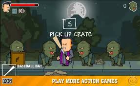 hordes of zombies using a variety of weapons, like a baseball bat, a